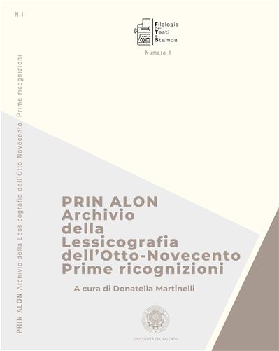 2024) dal titolo PRIN ALON Archivio della lessicografia italiana dell’Otto-Novecento. Prime ricognizioni, a cura di Donatella Martinelli, Lecce, ESE-UniSalento University Publishing. Il volume uscirà entro il 2025 e sarà disponibile
