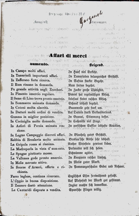 Primo dizionario e frasario di Corrispondenza mercantile, italiano-tedesco